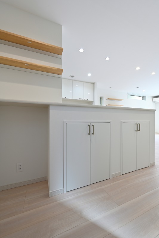 キッチンの反対側 カウンター下は造作で収納スペースに