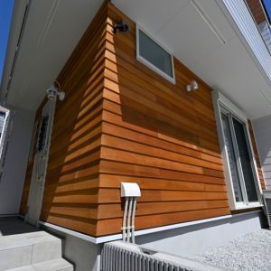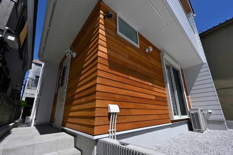 チャネルオリジナルの木製外装材が素敵