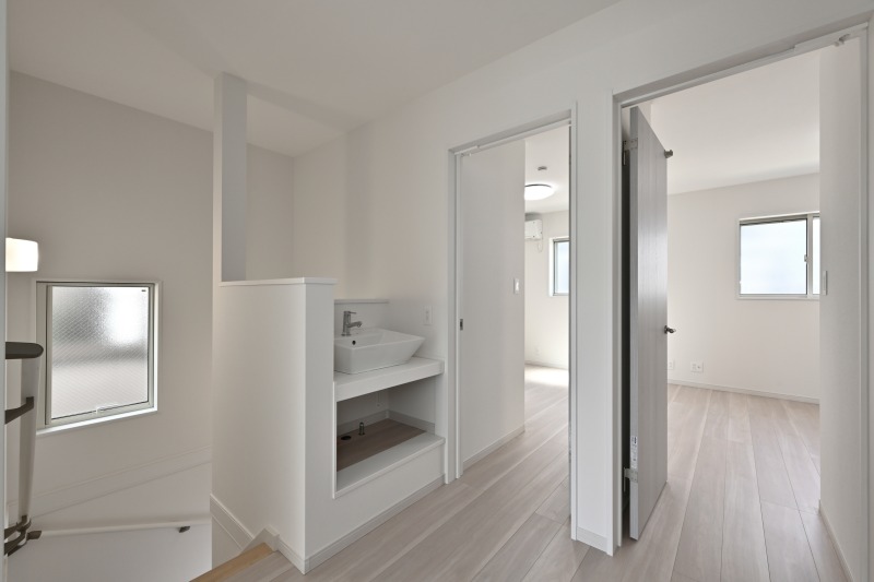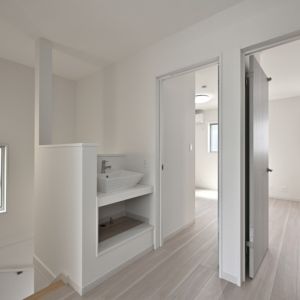 子供部屋の手前にすっきりデザインの手洗いボール