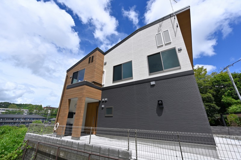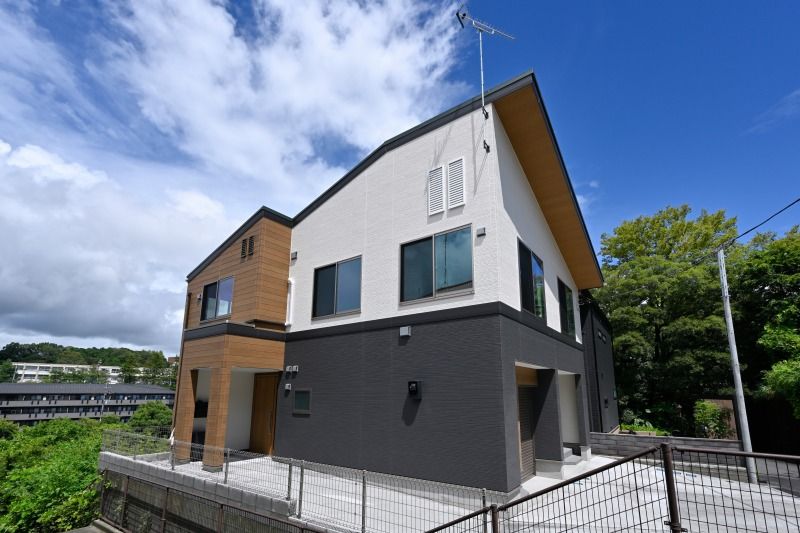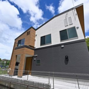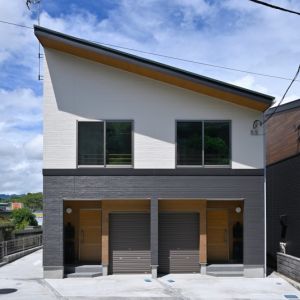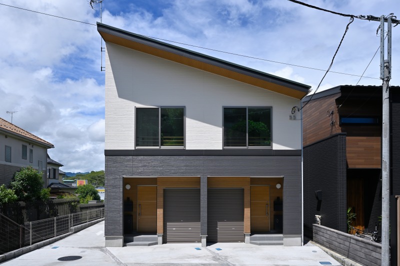 道路側にはバイクガレージ付き2所帯