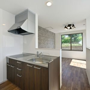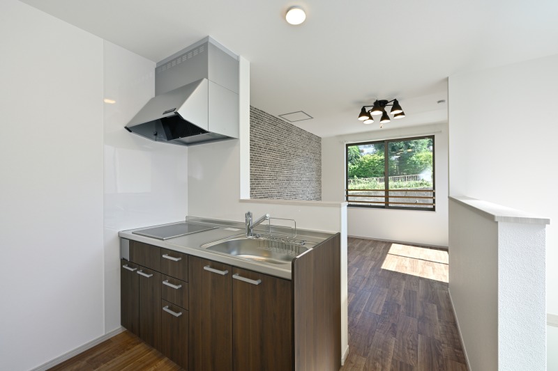 対面I型のキッチンはコンパクトながら明るい配置