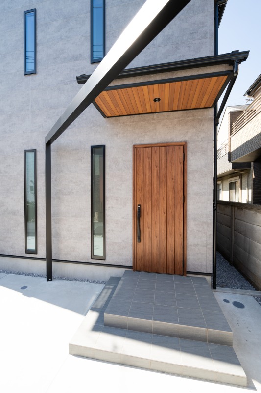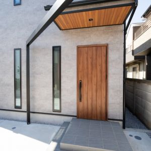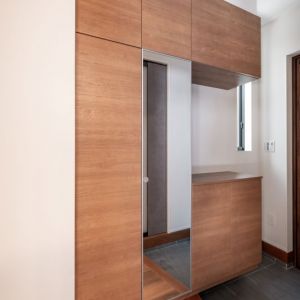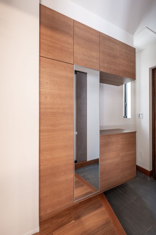 玄関スペースにはお出かけ前の最終チェックもできるミラーを配置