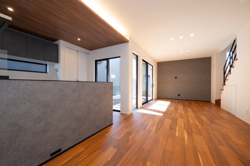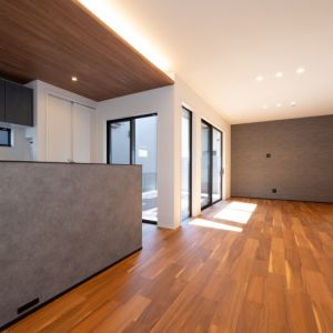 光が燦燦と降り注ぐ大きなサッシのリビング