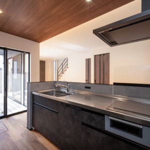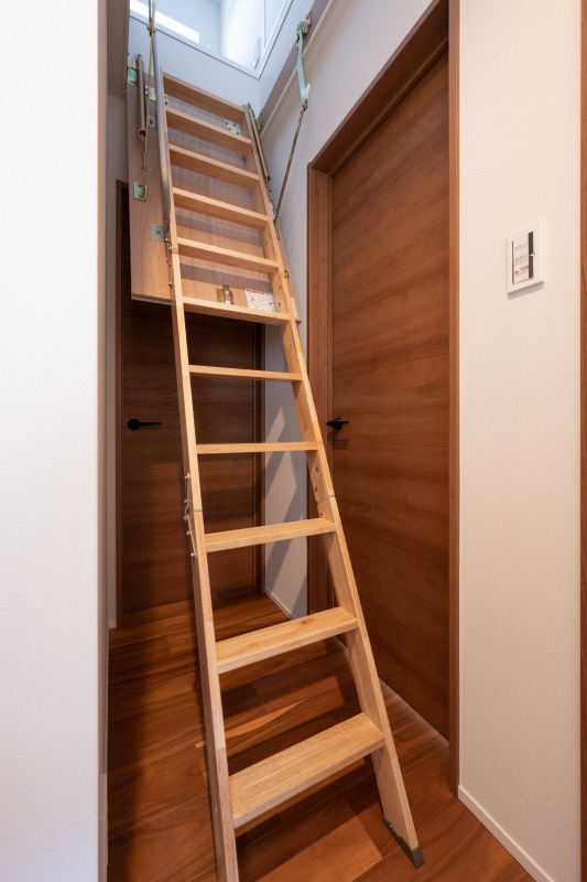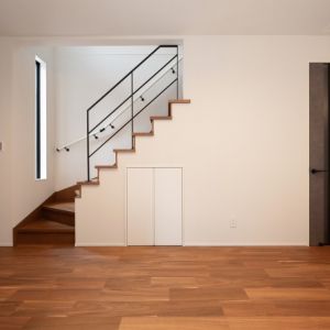 ひな壇階段のおしゃれな化粧手すりが空間を開放的にみせます